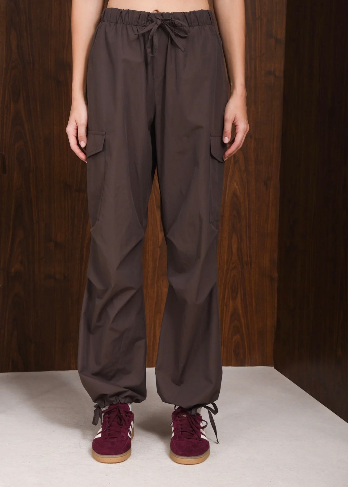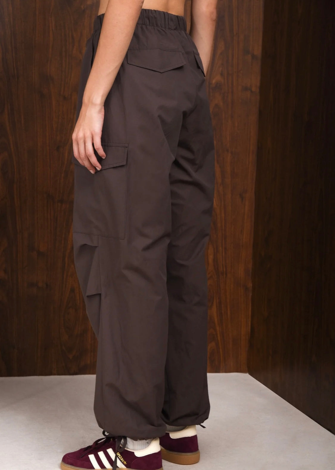 The Anxiety pants have a relaxed, wide-leg shape with an elastic waistband and drawstring for an adjustable fit. Made from lightweight, structured cotton-blend fabric for everyday comfort. Designed with large flap pockets on the sides and back, and adjustable drawstrings at the ankles for a flexible, utilitarian look.
