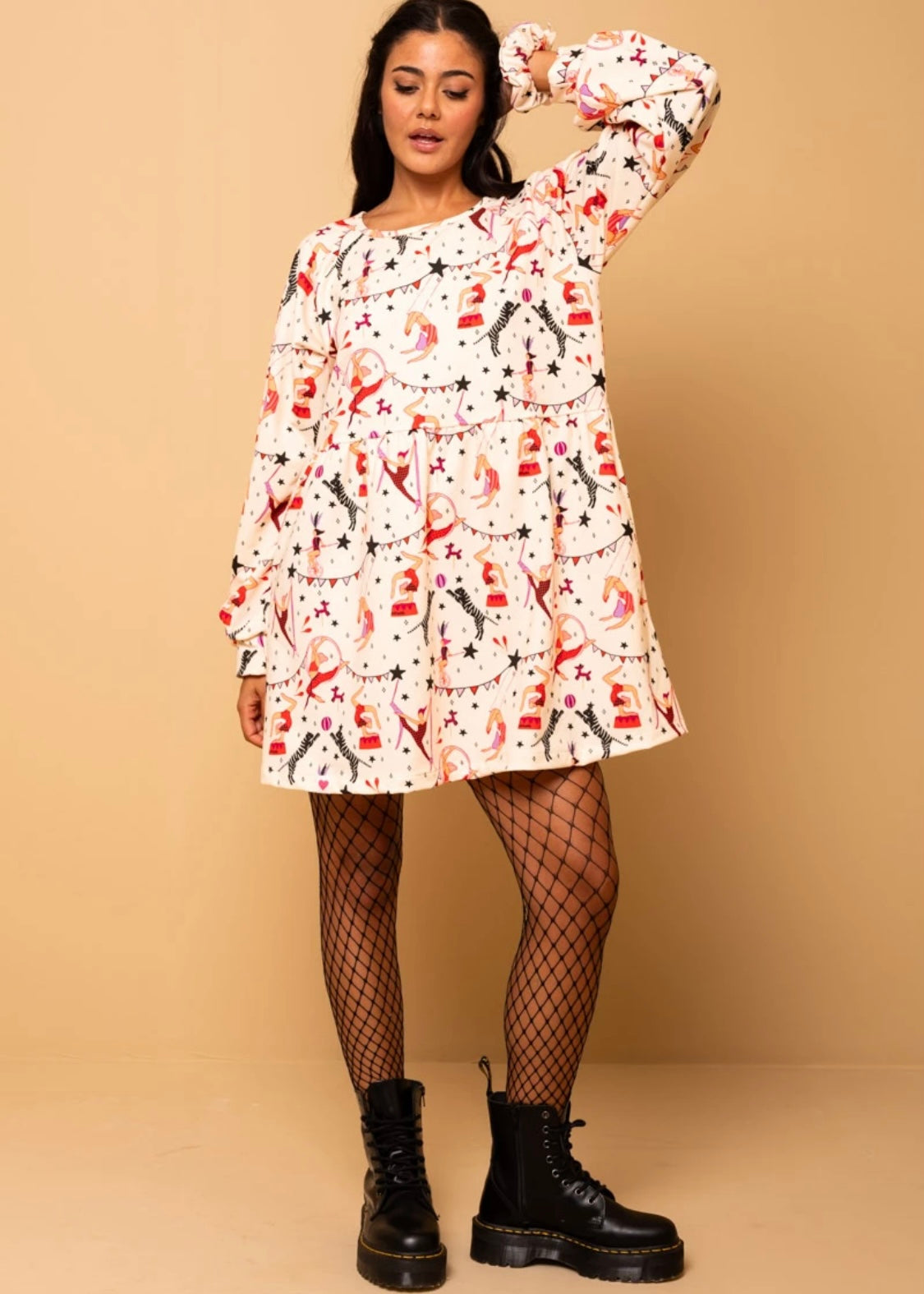 Melina Mini Dress Cream Circus Φούτερ Φόρεμα με Τσέπες Petit Boutik