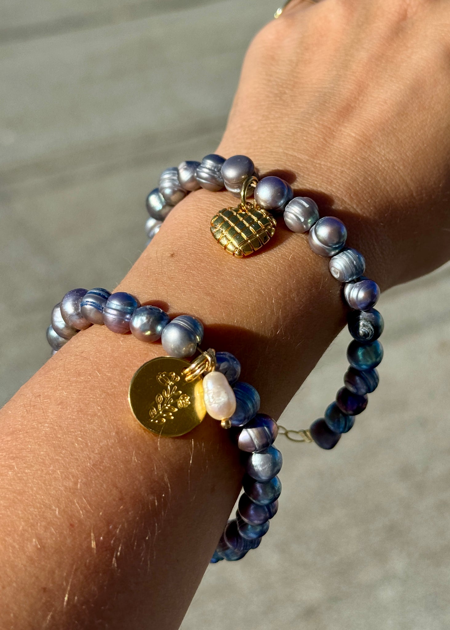 Βραχιόλι με γκρι μαργαριτάρι γλυκού νερού 5-6mm.